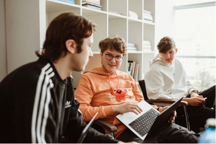 Podporujeme individualitu a spoluprácu medzi študentmi a učiteľmi prostredníctvom konferenčných priestorov, tichých miestností na nerušené rozmýšľanie a spoločných priestorov na budovanie vzťahov a relaxáciu.